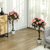 Outsunny Artificial Rose Tree Set of 2 with Realistic Flowers, Pink