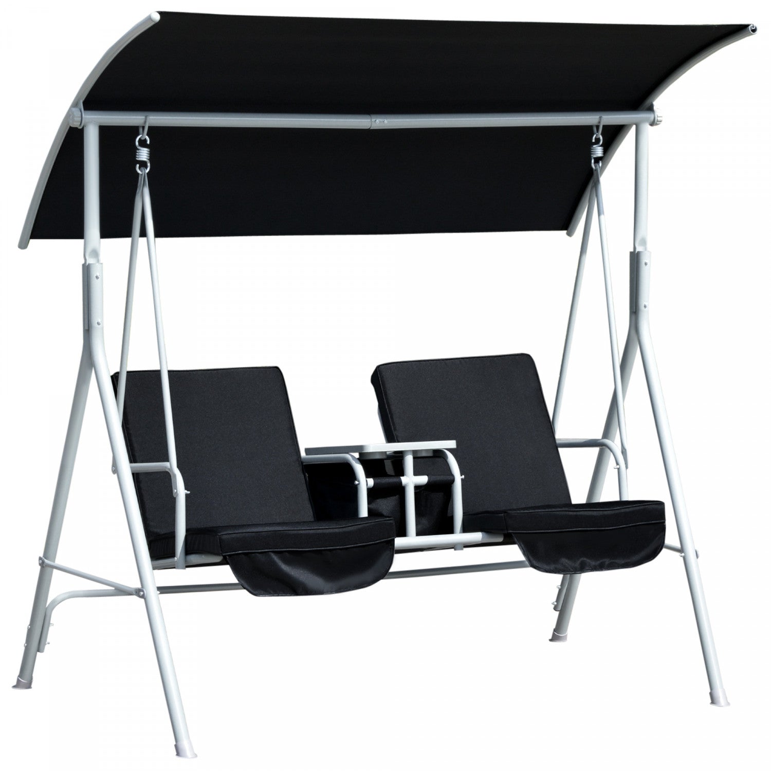 Outsunny Double Outdoor Swing Chair 2 Person Covered Swing Porch Swing W/ Pivot Table And Storage Console, Black