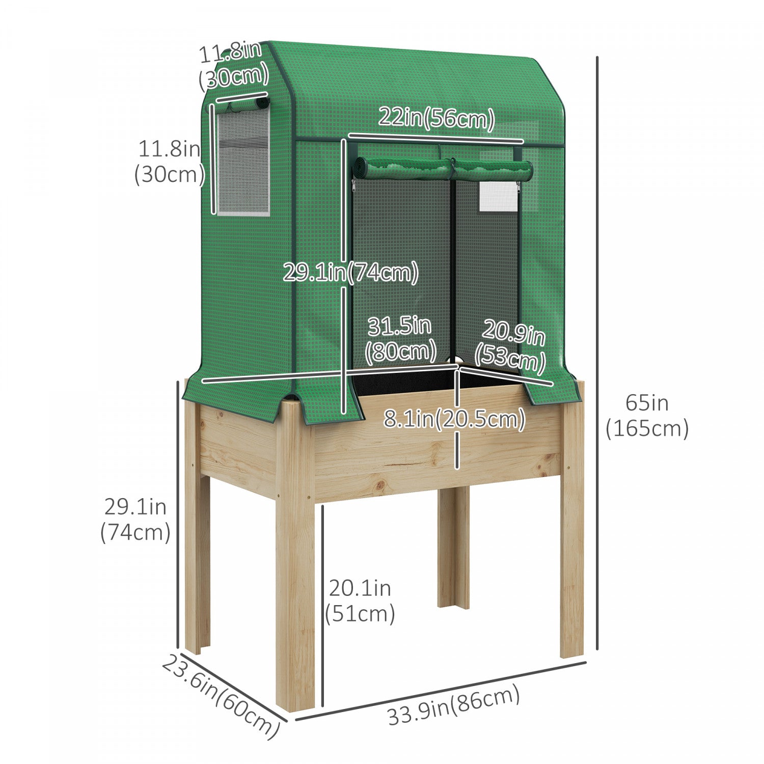 Outsunny Raised Garden Bed With Pe Greenhouse Cover And Bed Liner, Elevated Planter Box With Legs For Vegetables, Flowers, Herbs