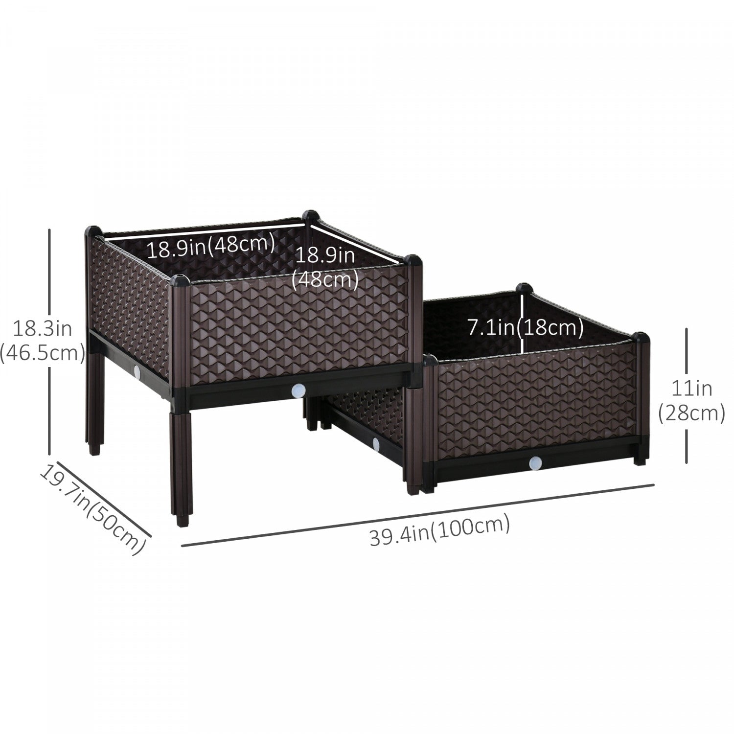 Outsunny Set Of 2 Plastic Raised Garden Bed, Planter Box, Flower Vegetables Planting Container With Self-watering Design And Drainage Holes For Patio Balcony