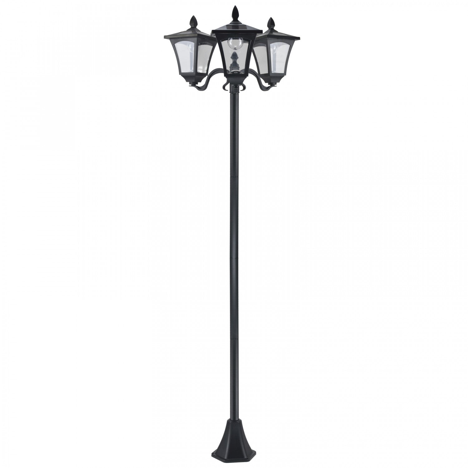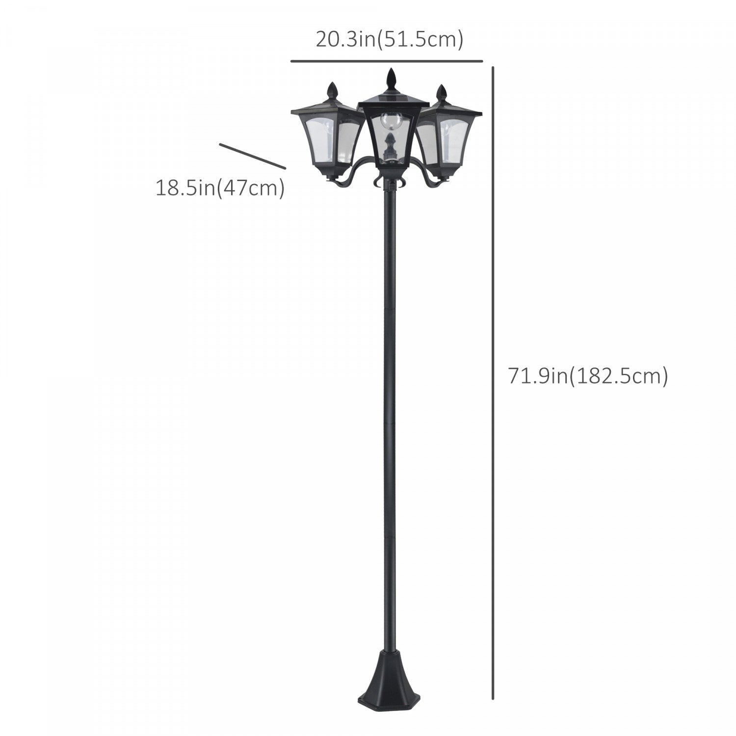Key Features | Features: ● The removable LED light is dimmable with the power control at the bottom of the cover ● The automatic light sensor activates at dusk when the UV luminance is lower than 3LUX. ● The energy-efficient garden lamp features 3 lights each of which includes 4 pieces of a-Si solar panels ● Lamp lights up to 6-10 hours when fully solar energy charged ● Stainless steel lamp post connected with a removable plastic base for stability and durability ● IP44 rated materials make it ideal for outdoor living spaces |