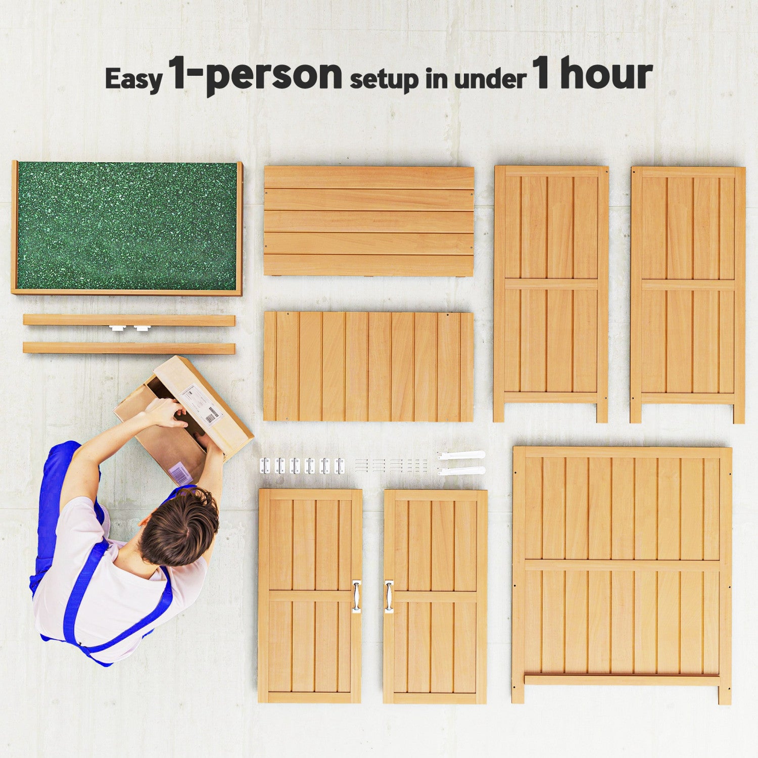Additional Information | - Colour: Natural Wood; - Material Used: Fir Wood; - Overall Dimension: 29.1" L x 16.9" W x 34.6" H (74 x 43 x 88 cm); - Bottom Size: 26.8" L x 15.4" W (68 x 39 cm); - Floor Space: 0.2552 m² (3 ft²); - Roof Size: 29.1" L x 16.9" W (74 x 43 cm); - Single Door Size: 12.6" W x 27.2" H (32 x 69 cm); - Single Shelf Size: 25.6" L x 13" W x 14.2" H; - Shelf Weight Capacity: 66lbs (Total); 33 lbs (Single); - Custom Label: 845-212; |