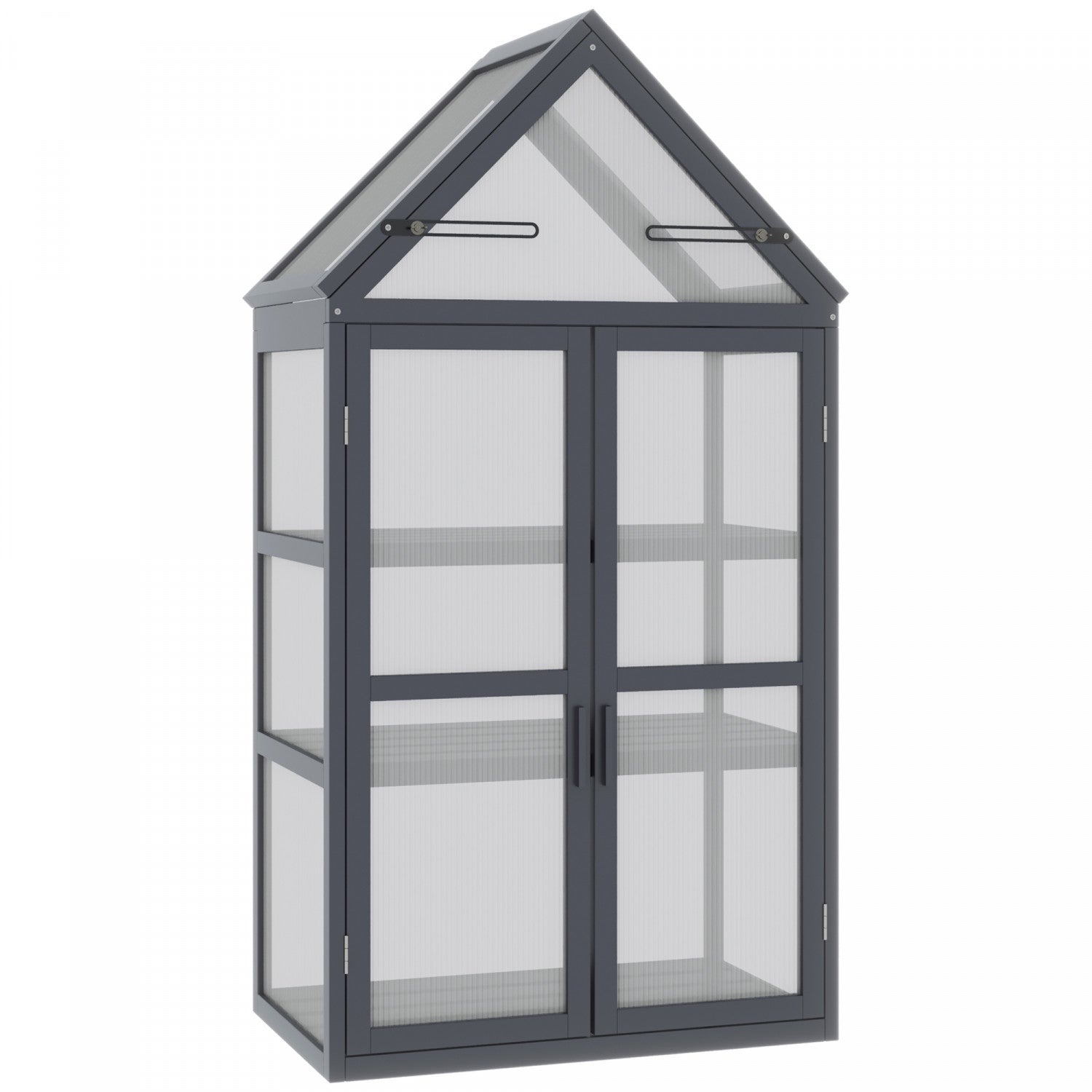 Outsunny Wooden Cold Frame Greenhouse Garden Portable Raised Planter Protection With 3 Tier Shelves, Openable Top And Double Doors, For Outdoor Indoor Use, 28" X 17" X 52", Grey