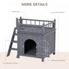 Pawhut 2-story Pet House For Cats Miniature Sized Dogs, Wooden Kitten Shelter With Enclosure, Balcony, Lockable Gate, Stairs, Grey