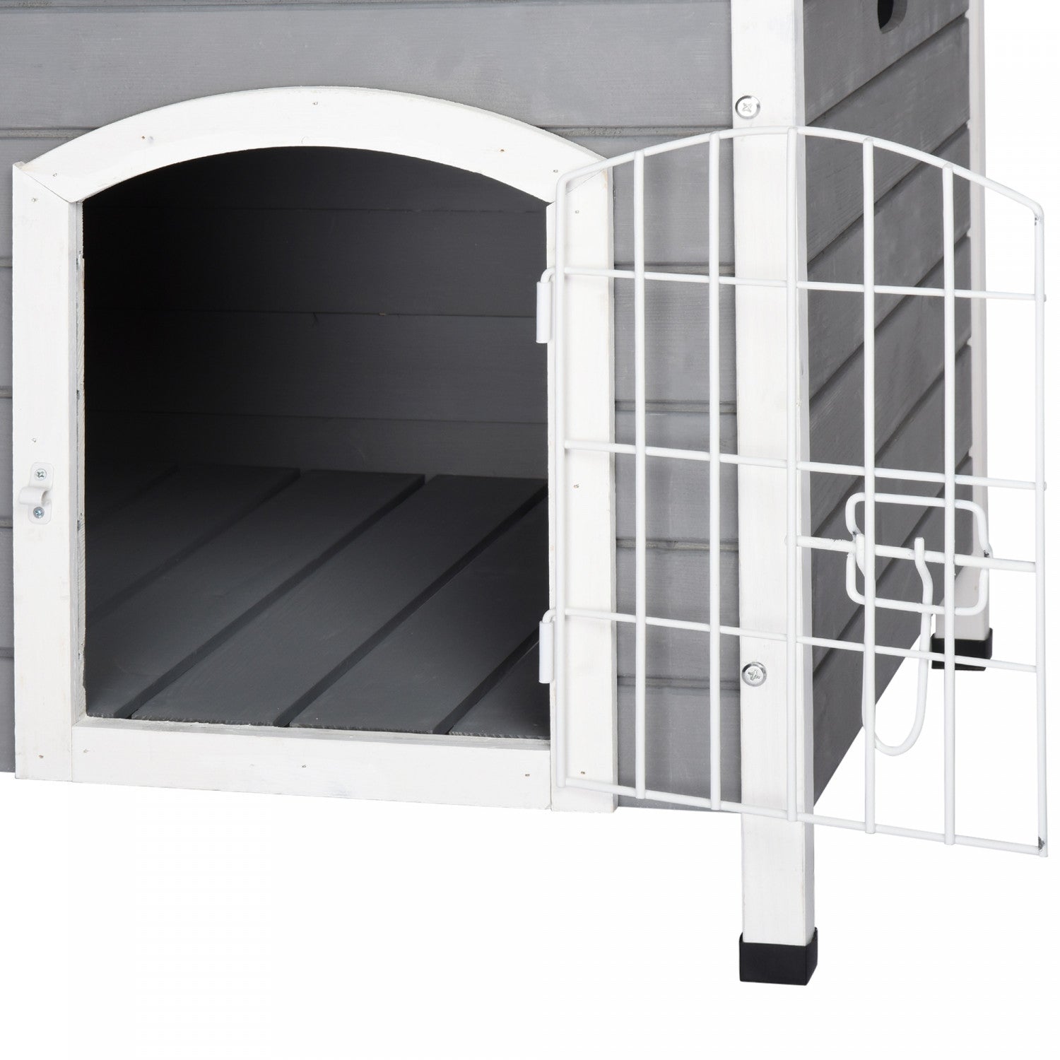 Pawhut 31" Folding Dog House, Portable Pet Crate Kennel, Wooden Wire Cage For Miniature And Small Sized Dogs With Lockable Doors Open Top Removable Tray, Grey