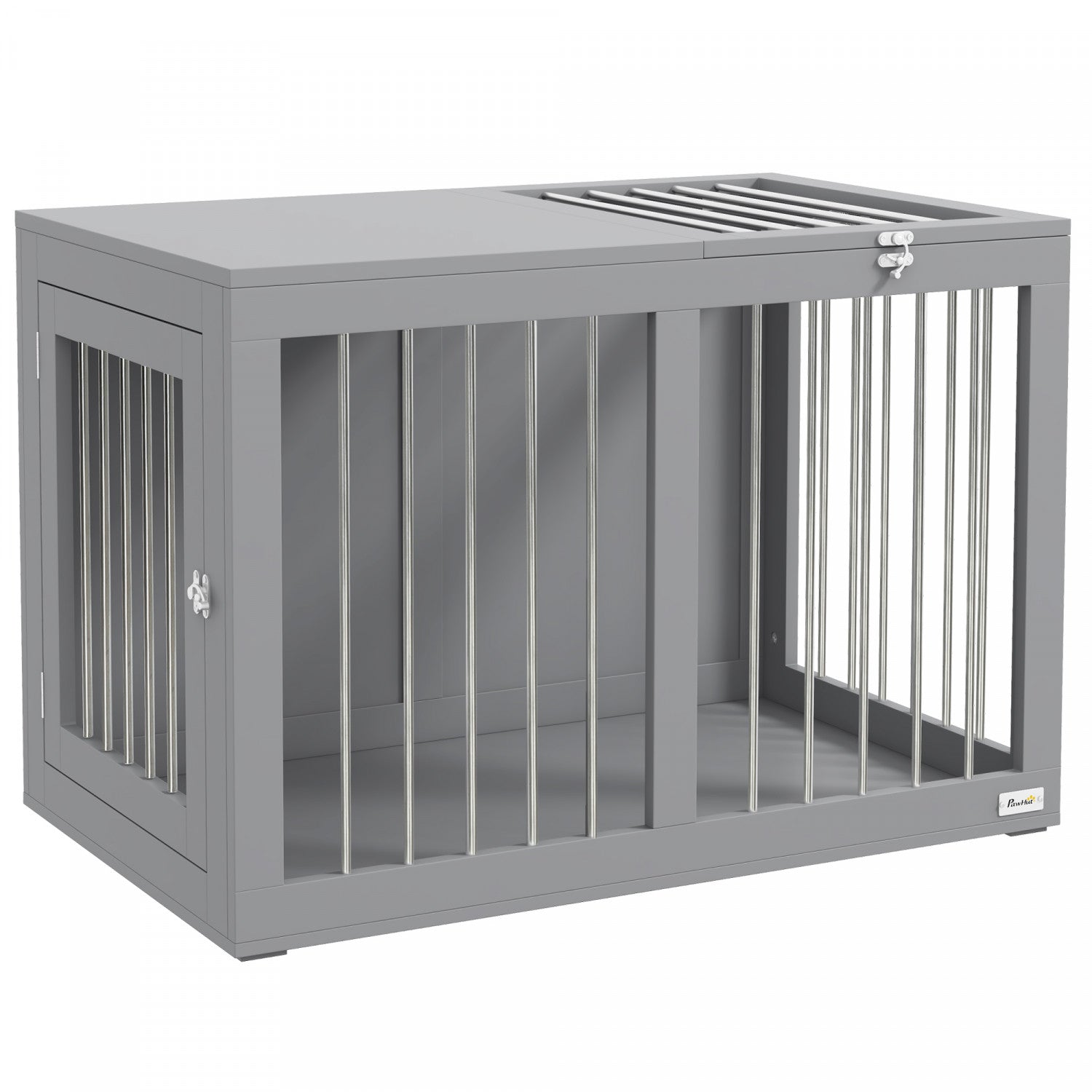 Pawhut Dog Crate Furniture, 31.5" Dog Kennel Furniture Side End Table With Double Doors, For Medium Dogs, Grey