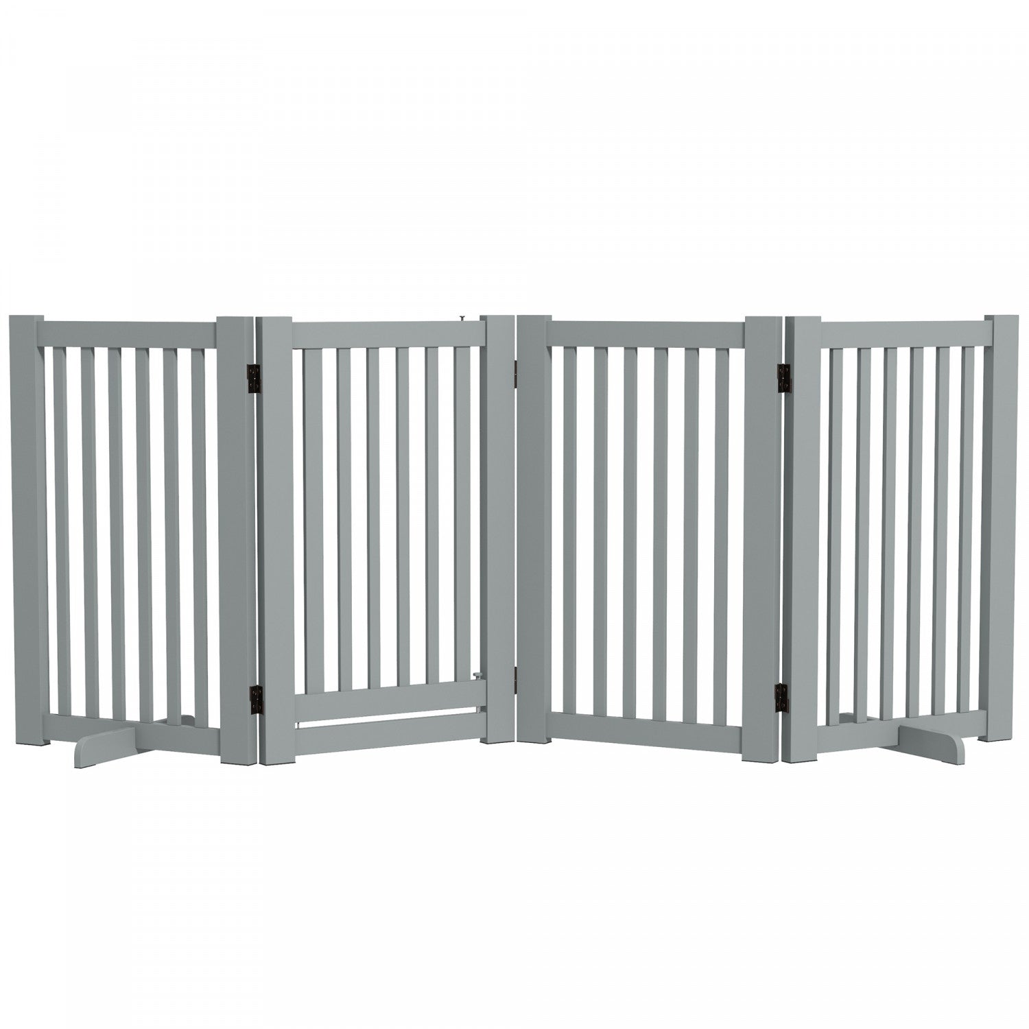 Pawhut Free Standing Wooden Pet Gate Indoor Dog Barrier Foldable Step Over Doorway Fence Safety Gate With Open Door Z Shape 4 Panel Light Grey