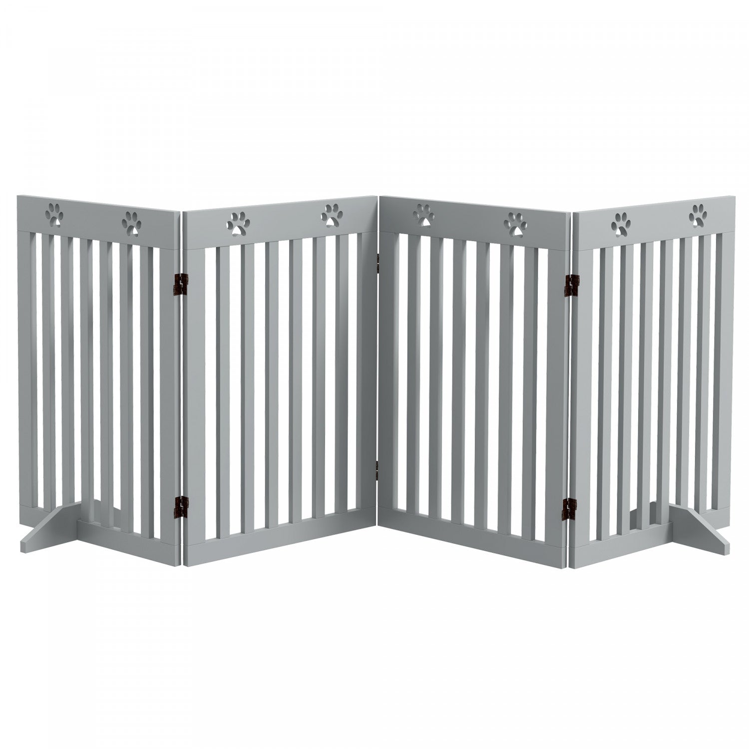 | Key Features | ● MDF board frame is robust and pet-friendly; ● Duel-sided folding system with quality dual hinges makes it easy to set into different shapes; ● Great for doorways, halls, bedrooms and staircases; ● Cut-out paw pattern on top is cute; ● Two removable feet for added stability; ● Suitable for small and medium dogs, shoulder height is less than 19.7"(50cm); ● Assembly required; |