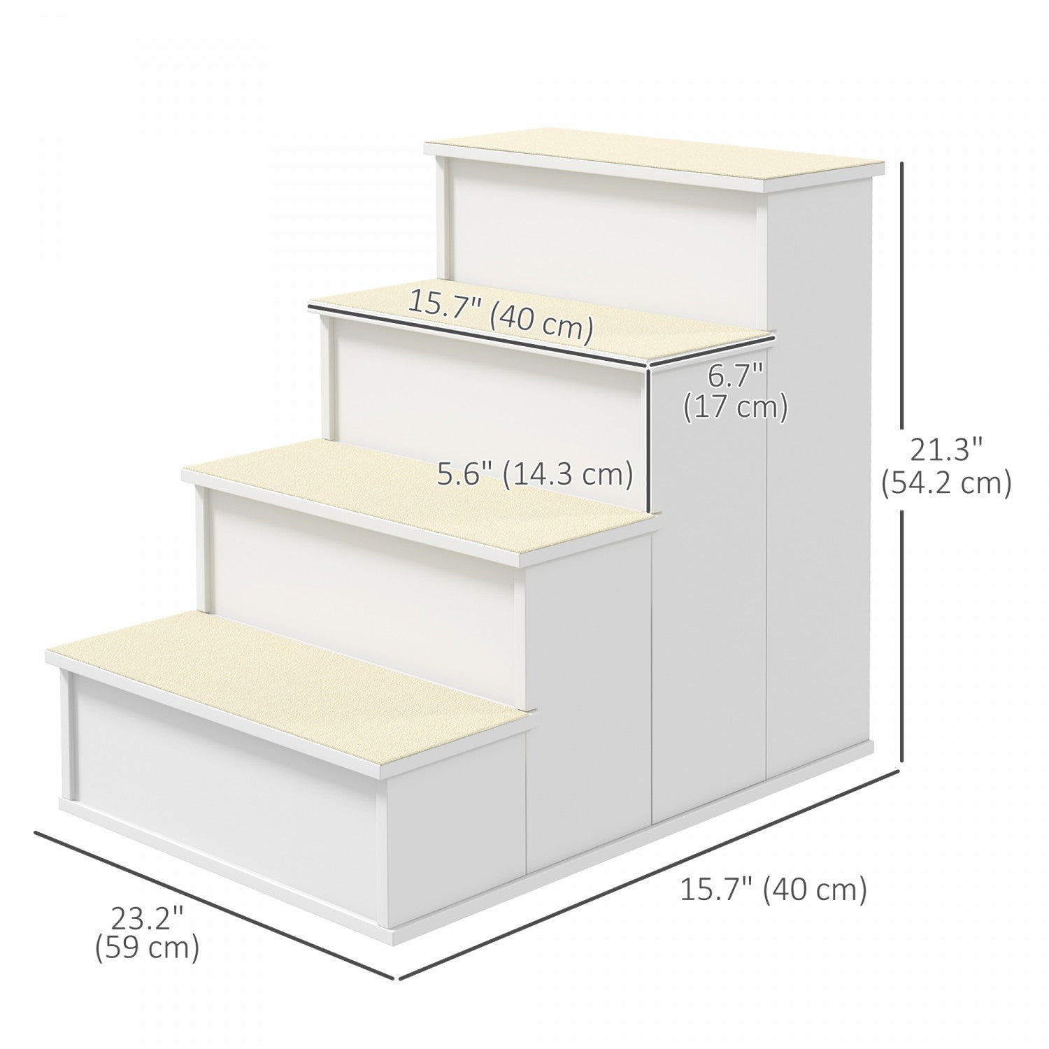 Pawhut Pet Stairs Dog Steps For High Bed, 4 Levels Dog Stairs For Car, Wooden Cat Ladder With Non-slip Carpet, 15.7" L X 23.2" W X 21.3" H, White