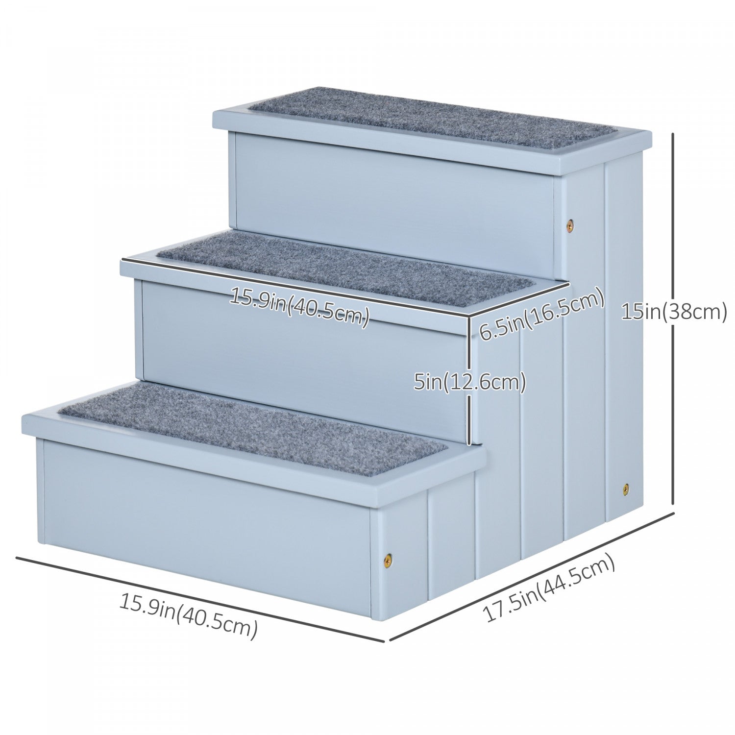 Pawhut Pet Steps 3-step Dog Stairs For Small Dogs Cats And Wooden Ramp With Storage Box Carpet Tread, Grey