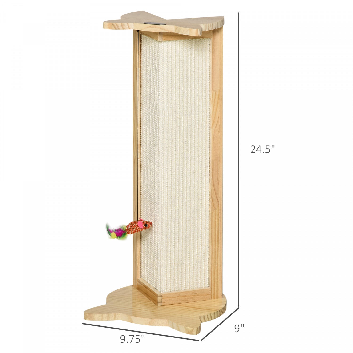 | Key Features | ● Sisal scratching posts with funny cat toy to satisfy your cat and relieve stress ● Suitable for a right-angle place to save space, such as cabinet corners and wall corners ● Covered in sisal and made of quality MDF ● An eye-catching animal toy with a cute design in the home ● Protects your furniture from damage ● Suitable for cats under 10lbs ● No assembly required |