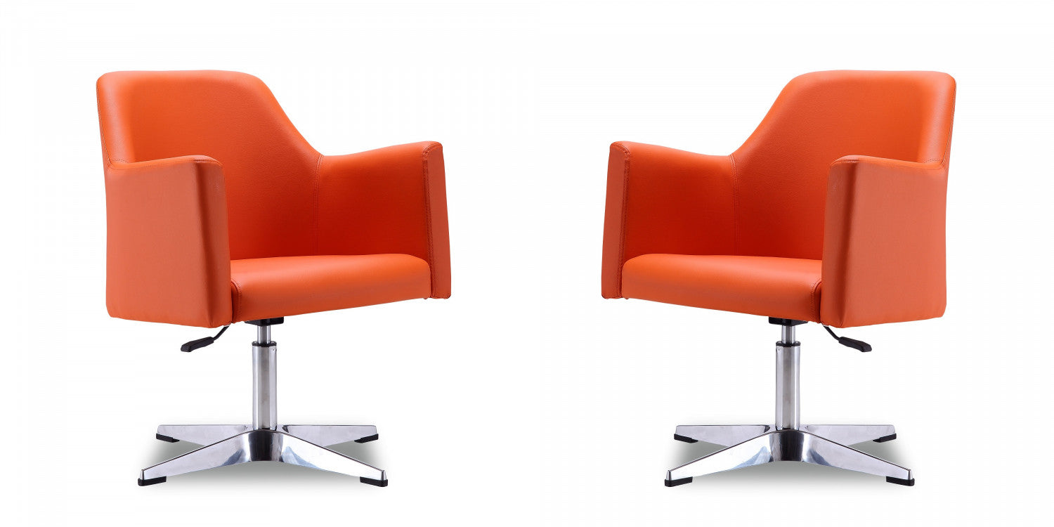 Pelo Modern Vegan Leather Swivel Lounge Chair in Orange - Set of 2 Accent Chair