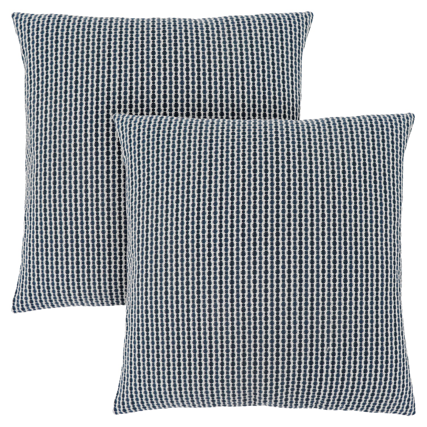 Instantly transform the look of a room with this elegant set of 2 square accent pillows in an eyecatching abstract dot design. In a tasteful light and dark blue color, these cushions add a chic update to a chair, sofa, bed, or entryway bench. The woven design on both sides is on a soft polyester fabric and the convenient side zipper allows for easy removal of the poly fill inserts to Machine Wash the pillow covers. These classic throw pillows will give beautiful texture and dimension to your décor!