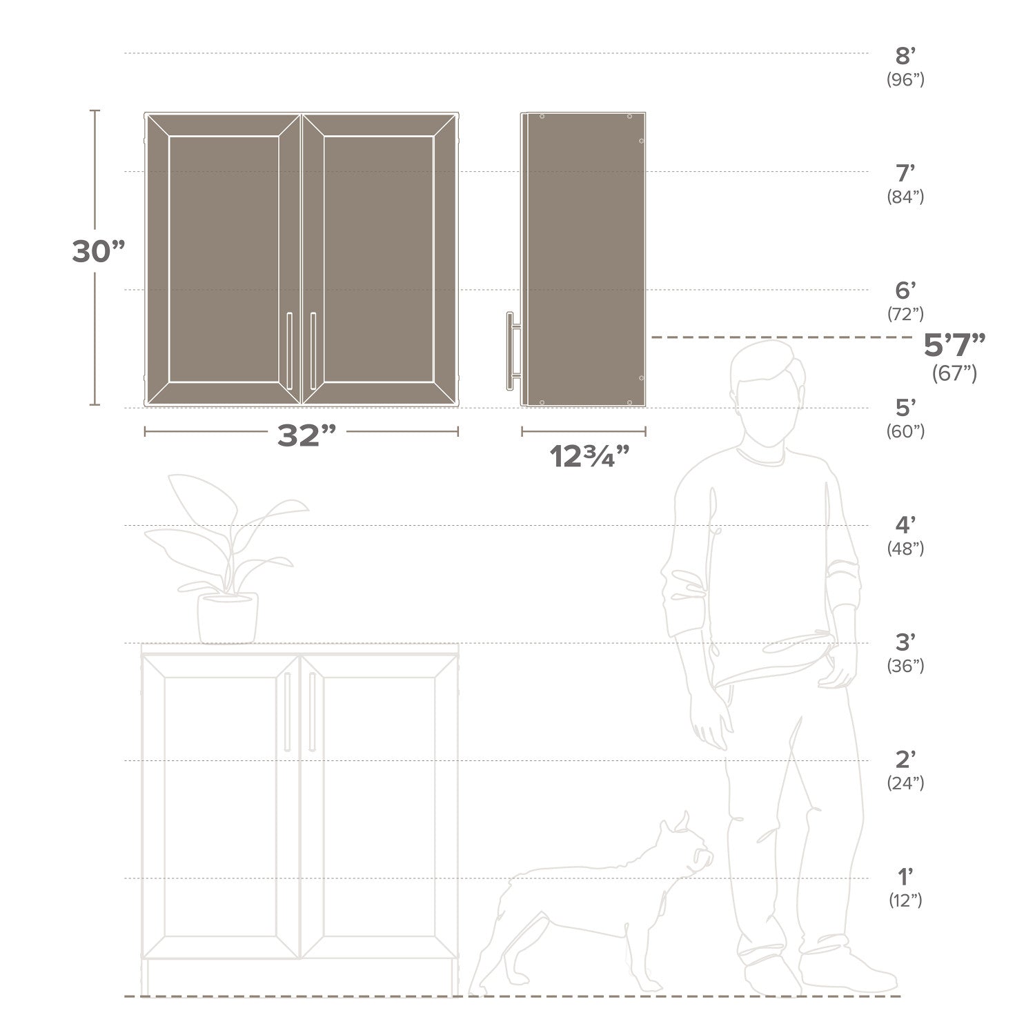 Width: 32" (81.3 cm) Height: 30" (76.2 cm) Depth: 12.75" (32.4 cm)