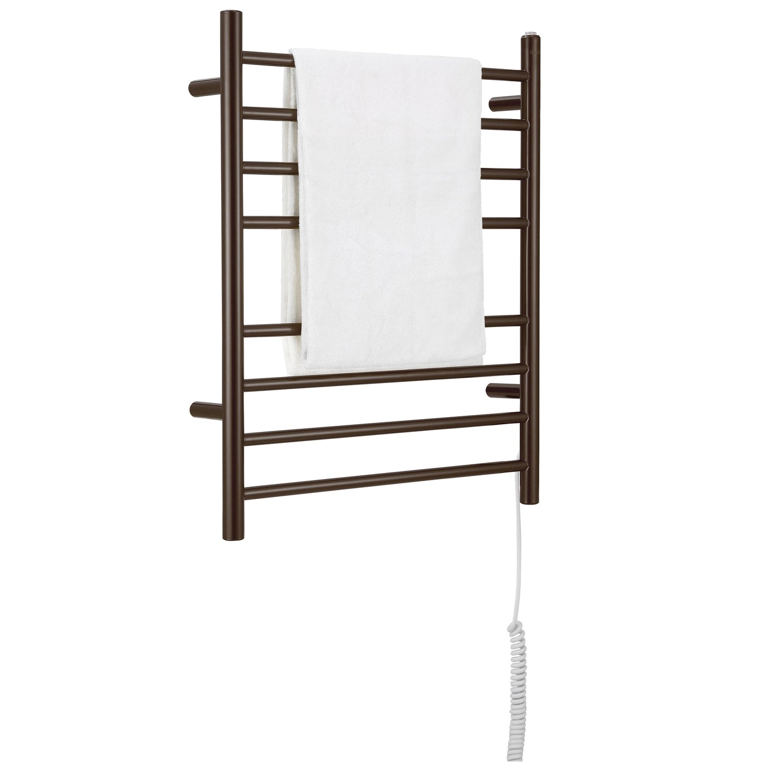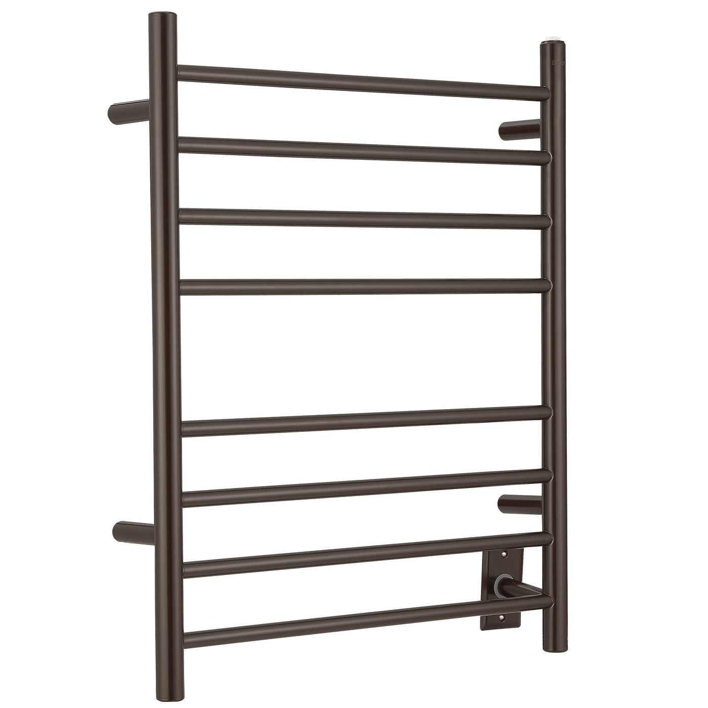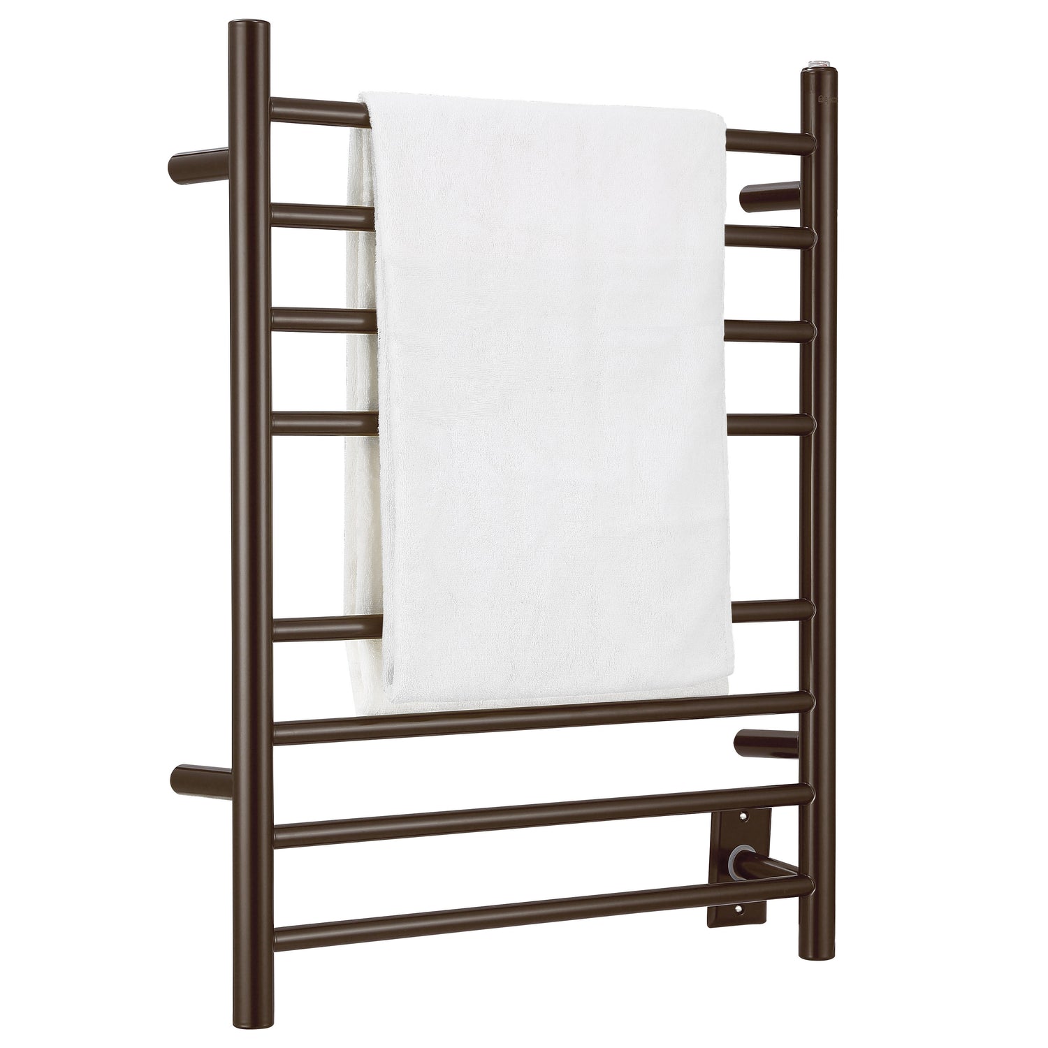 Indulge in spa like luxury in your own home with the Ancona Prestige Dual 8-Bar Hardwired and Plug-in towel warmer and drying rack in Oil Rubbed Bronze. Expertly crafted in high quality stainless steel with a stunning matte black finish, this 8-bar warmer is designed with two installation options - install it on your wall using the discreet hardwire option or simply plug into an existing outlet – the choice is yours!