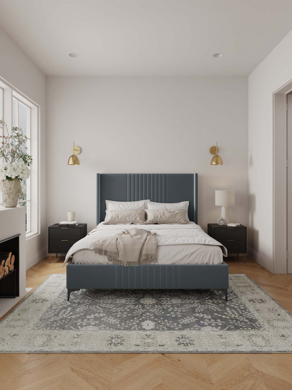 Promenade Mid-Century Modern Upholstered Velvet Queen Bed in Gray