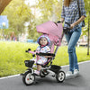 Key Features | ● 6-in-1 Trick offers multiple riding options: stroller, steering trike, learning-to-ride trike, and classic trike ● Rotatable baby seat for easy parent supervision while strolling ● Smooth and quiet ride with EVA wheels for outdoor use ● High back support, foam-surrounded safety guardrail, and 5-point safety harness for baby's security ● Adjustable and removable push handle for complete parent control ● Built with a metal frame for durability ● Convenient storage options including back bin, cupholder, and front basket ● Detachable canopy with UV protection and mesh screen for ventilation |