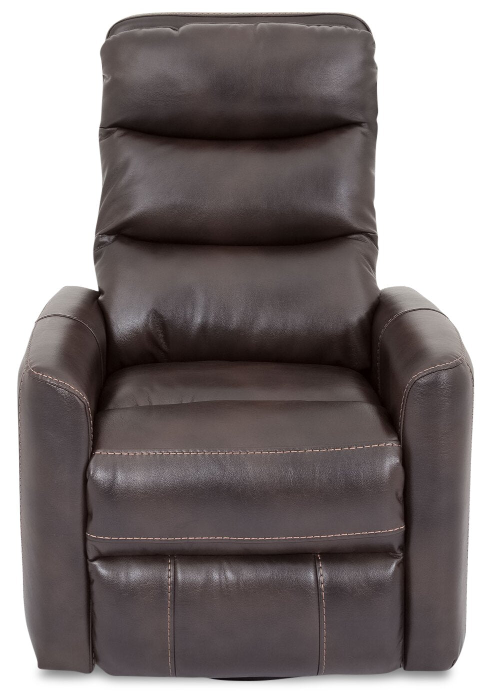 Designed with your comfort in mind, the Quinn power recliner with rocker and swivel functions hails from the Cindy Crawford collection. Push the button on the chair's side and feel the power recline function move you into your ideal TV watching position. With a solid hardwood frame, this piece is offers outstanding durability and lasting quality. Leather-like upholstery is warm and inviting, with a soft feel and temperature-adjusting coziness you'll enjoy. Enduring, thick foam cushioning complements the hardy sinuous springs.