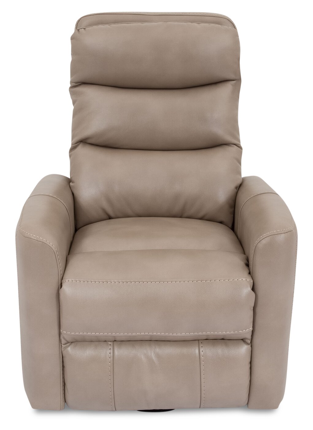Designed with your comfort in mind, the Quinn power recliner with rocker and swivel functions hails from the Cindy Crawford collection. Push the button on the chair's side and feel the power recline function move you into your ideal TV watching position. With a solid hardwood frame, this piece is offers outstanding durability and lasting quality. Leather-like upholstery is warm and inviting, with a soft feel and temperature-adjusting coziness you'll enjoy. Enduring, thick foam cushioning complements the hardy sinuous springs.