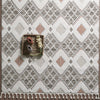 This beautiful shag area rug features an exquisite Geometric Diamond design and a light cream, orange, and brown pile.