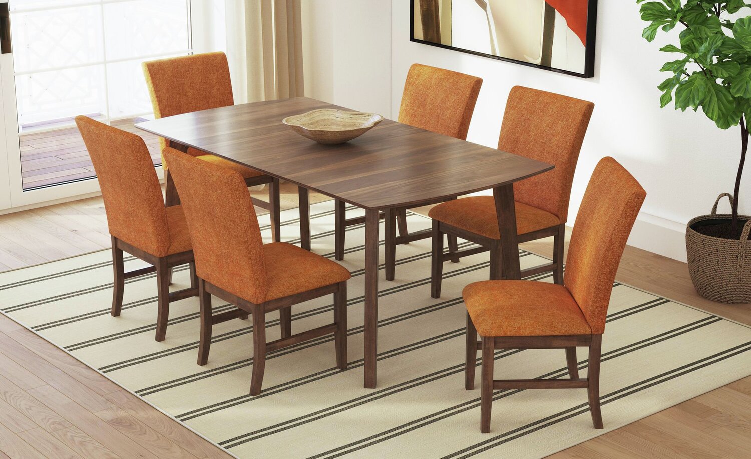 | Primary Construction Material | Rubberwood, Walnut Rubberwood, also known as parawood or Asian hardwood, is one of the most durable and eco-friendly woods in the furniture market today. Once the tree's latex sap is collected for other industries, rubberwood is recycled into home furnishings. The dense grain makes it stable and strong, and the naturally light undertone accurately holds the intended stain colour. Walnut has a unique growth pattern, which allows for smaller rings to grow inside the wood's normal ring pattern. This creates beautiful patterns used to decorate all types of furniture. |