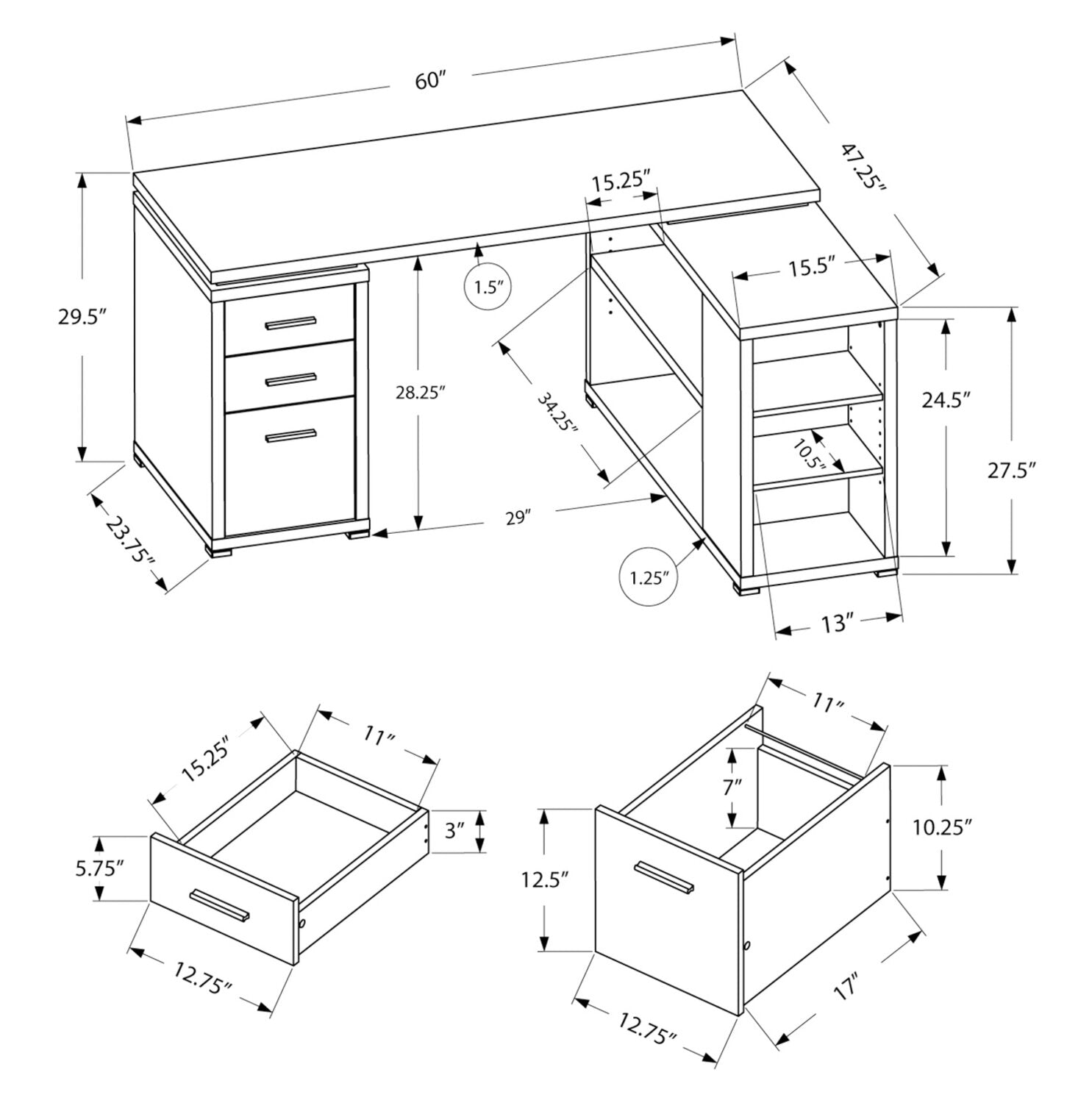 Bring functional storage space and an elegant display to your office with this Rickey desk. This piece comes with a filing cabinet for letter or legal-sized files and three drawers for storing small office supplies. Plus, there’s a shelving unit with three cubbies and one open shelf that gives the desk an airy feel, offering ample space for both books and decorative accessories. Finished in a polished laminate, this computer desk has a large desktop panel that overlaps the shelving unit to create a second, slightly lower work surface.