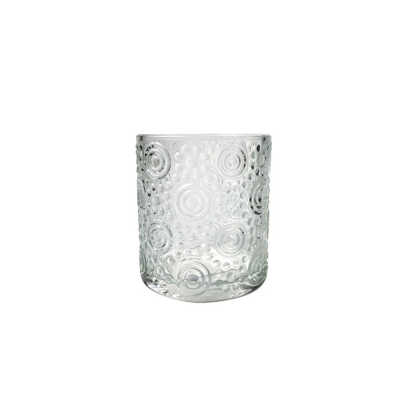 Crafted from premium quality glass, the Round Glass Candle Holder (Circles) makes a classy addition to your home décor collection. The eclectic pattern artwork all over the glass renders it a striking appeal. You can place it on the dining table or coffee table with other tabletop accents or accentuate your walls and book shelves with it. This popular and unique decorative item is sold in a set of four pieces.