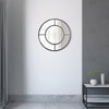 This round mirror has an elegant and decorative metal window frame that looks great in any space. A clean modern design that fits with any decor. This mirror will freshen up the look of your bathroom, bedroom, or hallway and offers durability and style all in one.