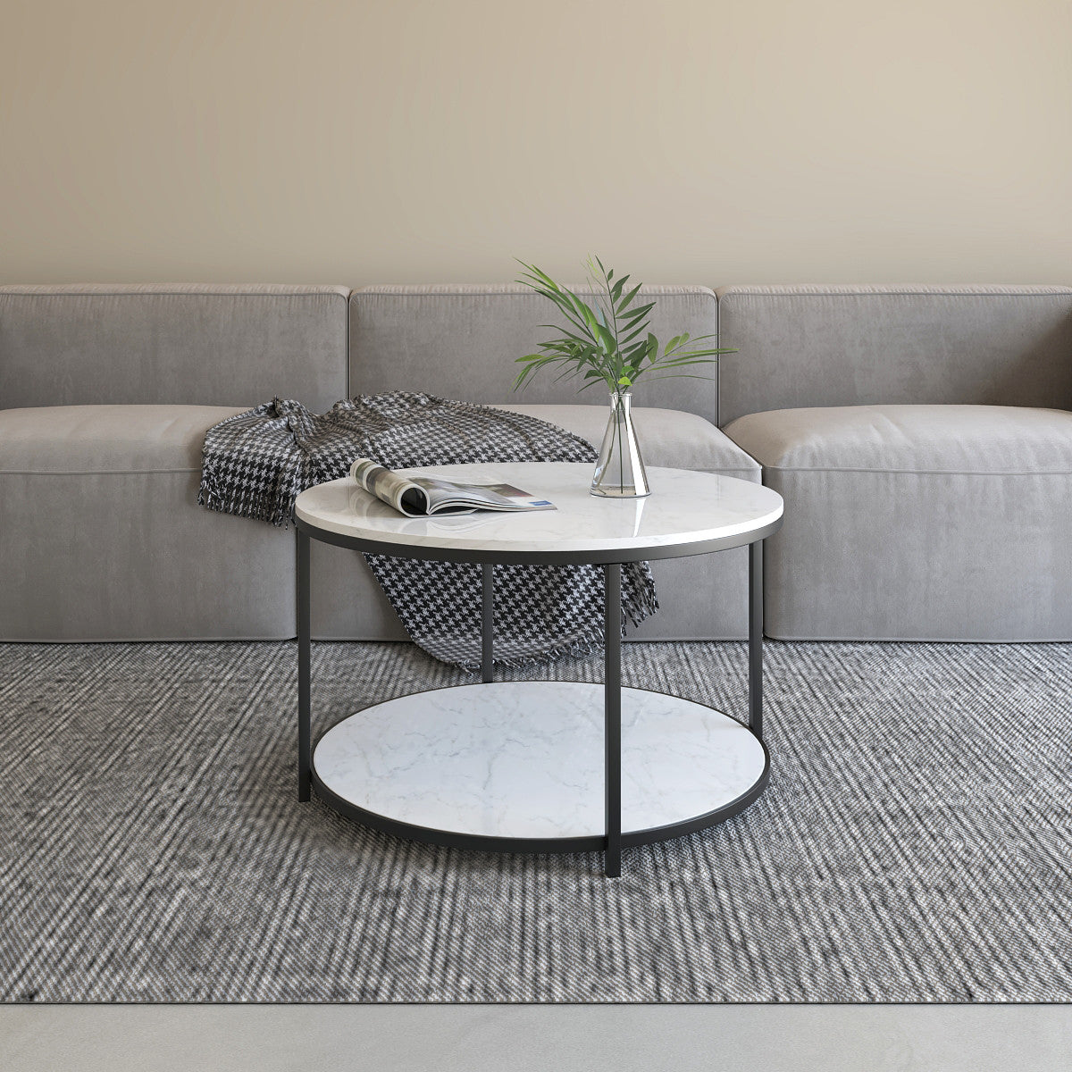 Sherry 31.5" Round Engineered Wood Lift-top Nesting Coffee Table With Drawers, Black