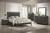 Penelope Upholstered Wingback Bed in Grey Fabric with Nailhead Design, Button Tufted - Queen Size