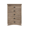 The Salt Spring 5-Drawer Dresser, a marriage of a classic details and simplistic modern design. Add big storage with 5 spacious drawers, all in a compact footprint for any bedroom size. The drifted gray laminate finish adds a hint of warm coastal style and the black metal hooded handles add a vintage touch.