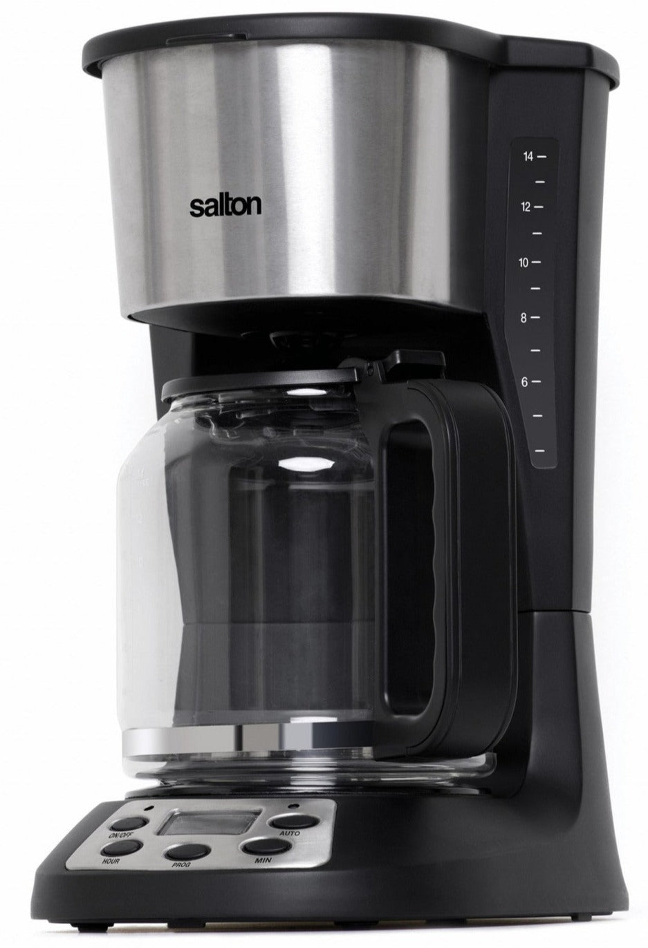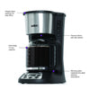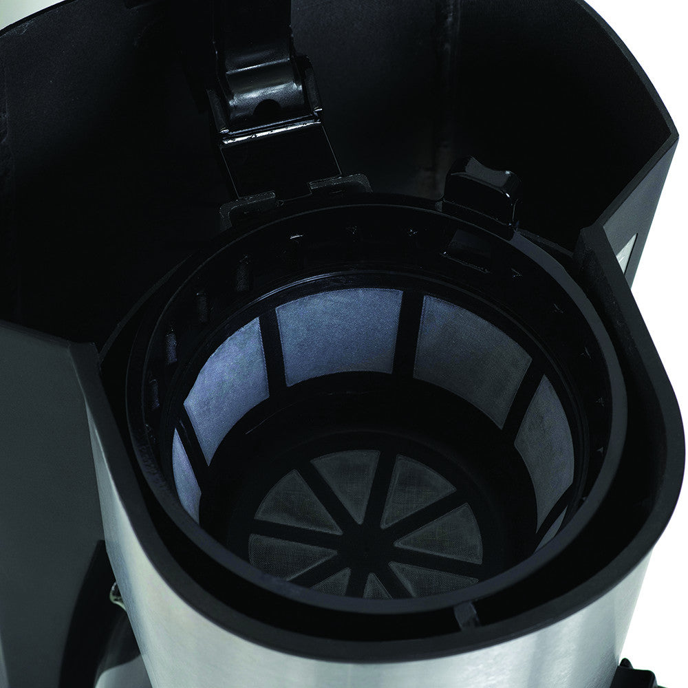 The Jumbo Java brews a whopping 14 cups of coffee! With a 24-hour programmable timer, you can start every morning with a fresh cup of java. The keep-warm feature keeps your coffee at the perfect temperature and automatically shuts off after 2 hours. With pause and serve you can pour a quick cup of joe while the Jumbo Java is brewing. With its attractive design and stainless-steel accents, this mammoth coffee maker is the perfect addition to the house (or office) of coffee lovers!