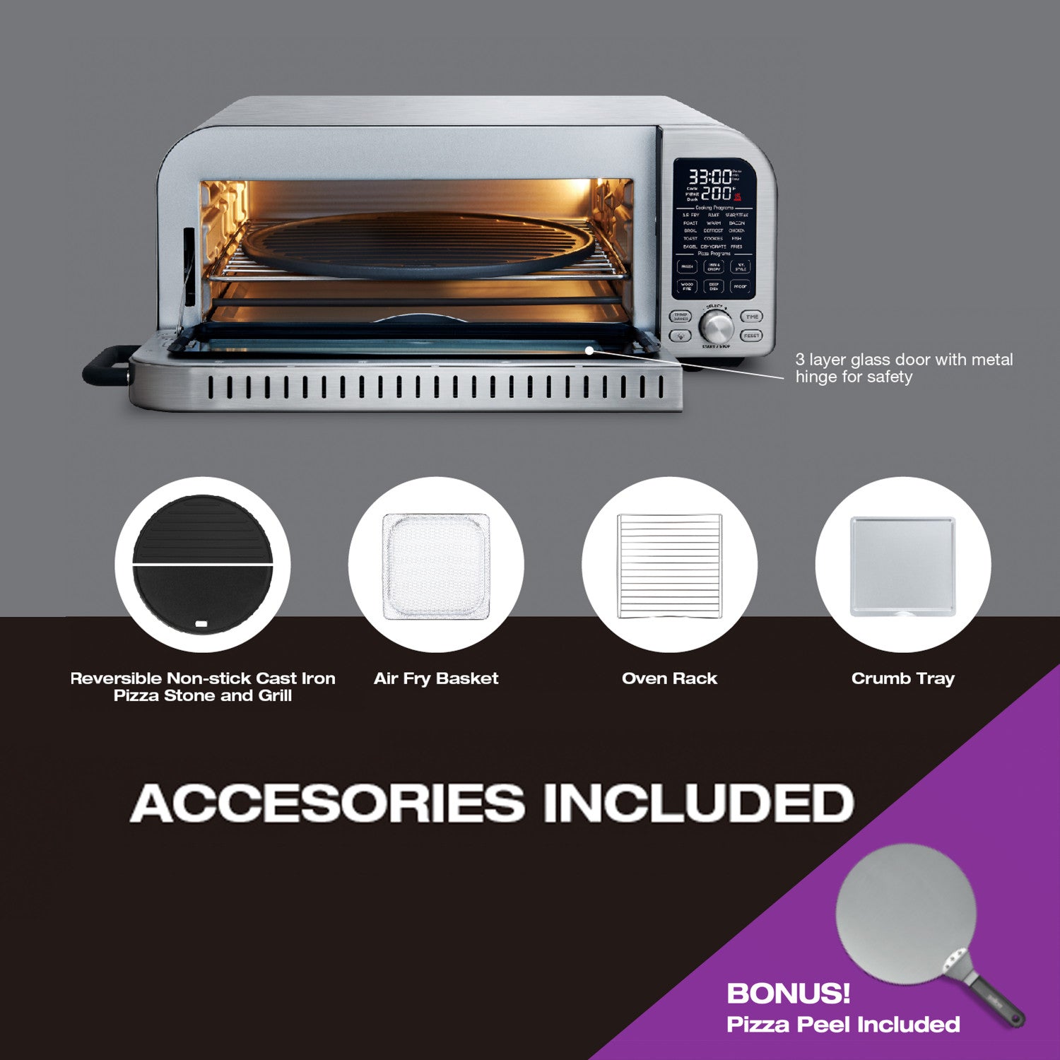 Salton Pizzadesso - Ultra High Heat Professional Pizza Oven and Air Fryer Combo Convection Toaster Oven