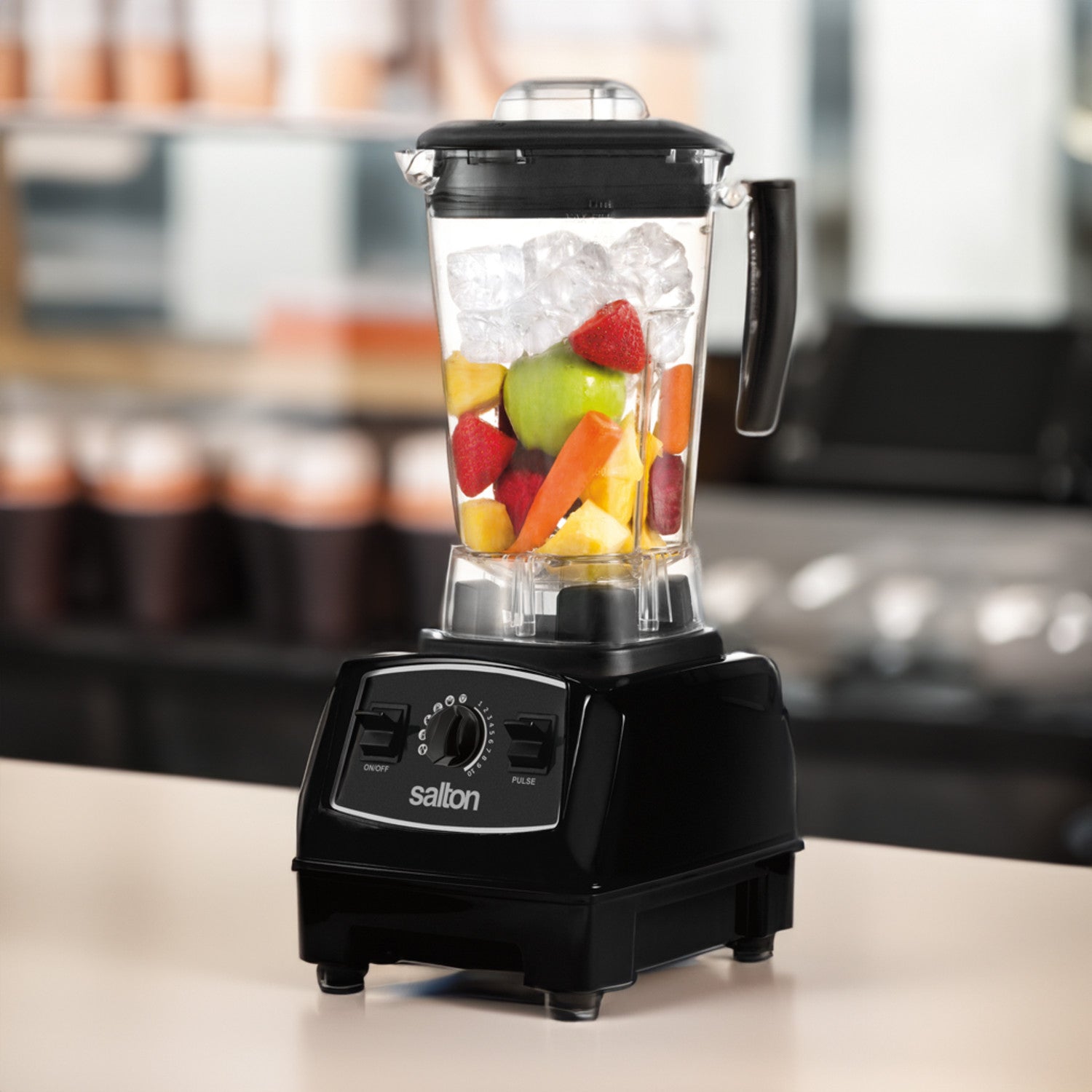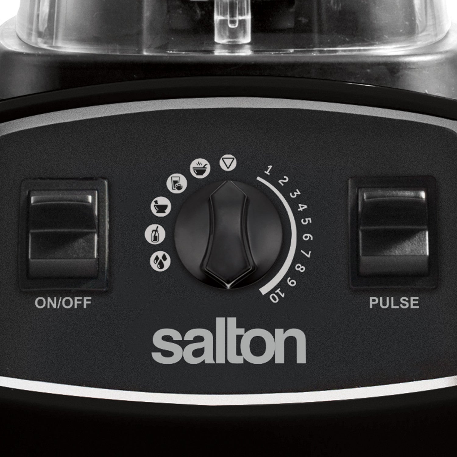 Unleash the power of the Salton Professional Grade Power Blender! Engineered for strength and durability, this powerhouse features an 8-blade blending system and an all-metal drive. With 5 pre-programmed settings, alongside variable speed control and a pulse function, it's your ultimate power tool. The 2L Tritan™ Vortex Jar ensures seamless blending with its innovative design, while the professional-grade power of 2 HP and 30,000 RPM, delivers unparalleled performance. Harnessing the power of friction, it can even heat foods, whipping up soups and sauces in minutes. Recipes included! Whether you're blending, crushing, emulsifying, chopping, pureeing, or liquefying, the Salton Professional Grade Power Blender is your permit to culinary excellence.