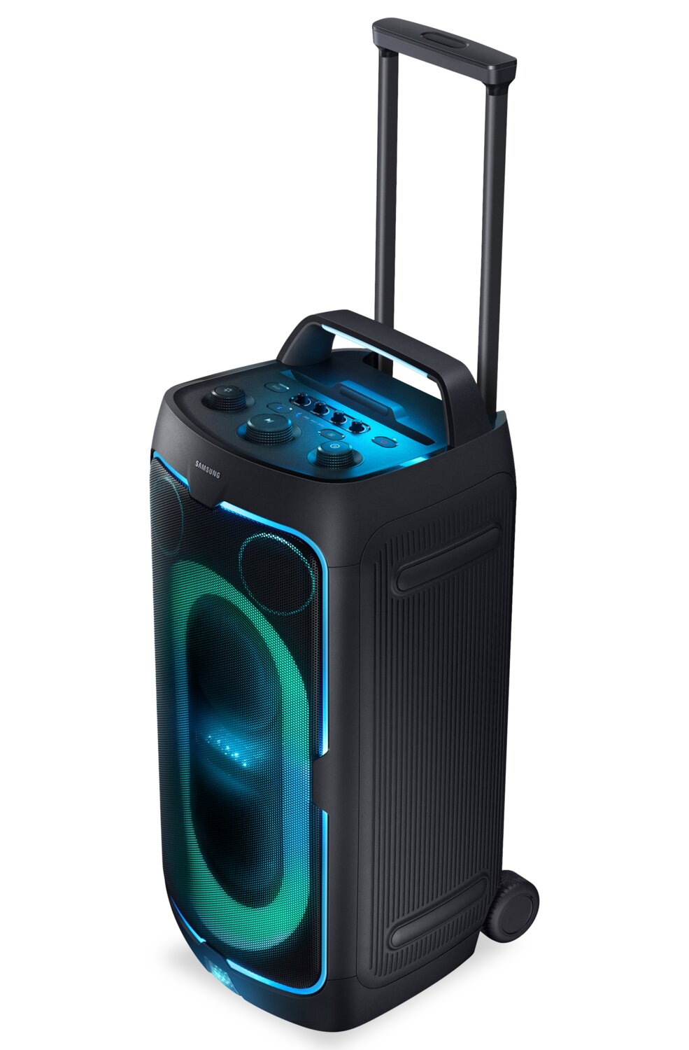 Powerful Party Sound: Party Lights+: Up to 18 Hours of Playtime: Portable Design: Jam Session: Bass Modes: Waveguide: Samsung Sound Tower App: |