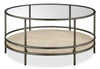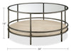 Saxon 38\" Modern Round Coffee Table with Shelf - Natural and Vintage Nickel