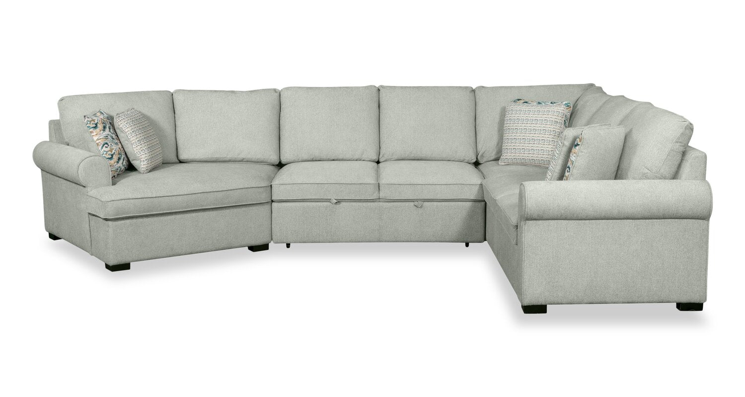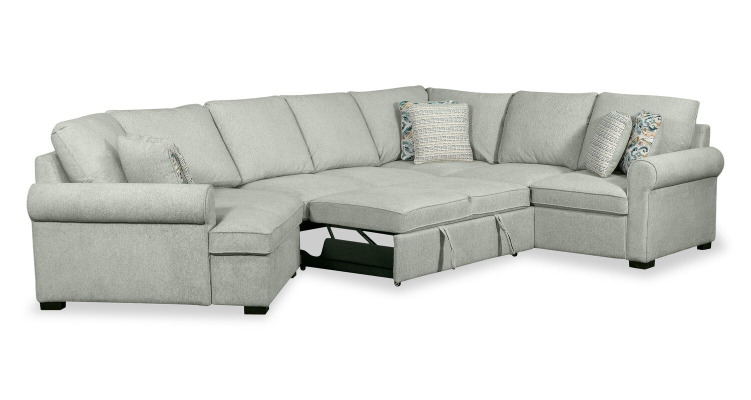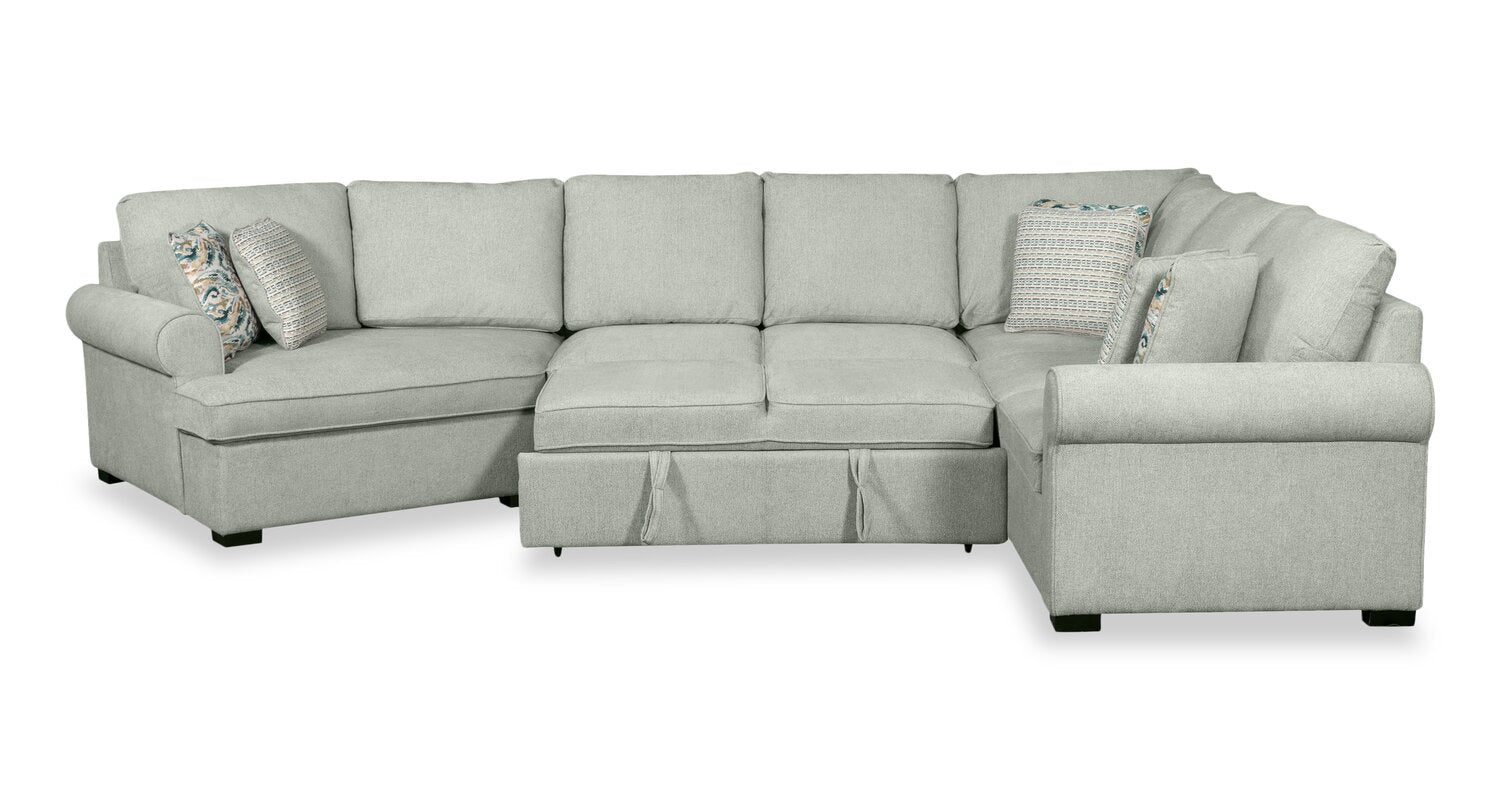 Scott Living Haven 3-Piece Left-Facing Chenille Fabric Cuddler Sleeper Sectional - Seafoam Blue