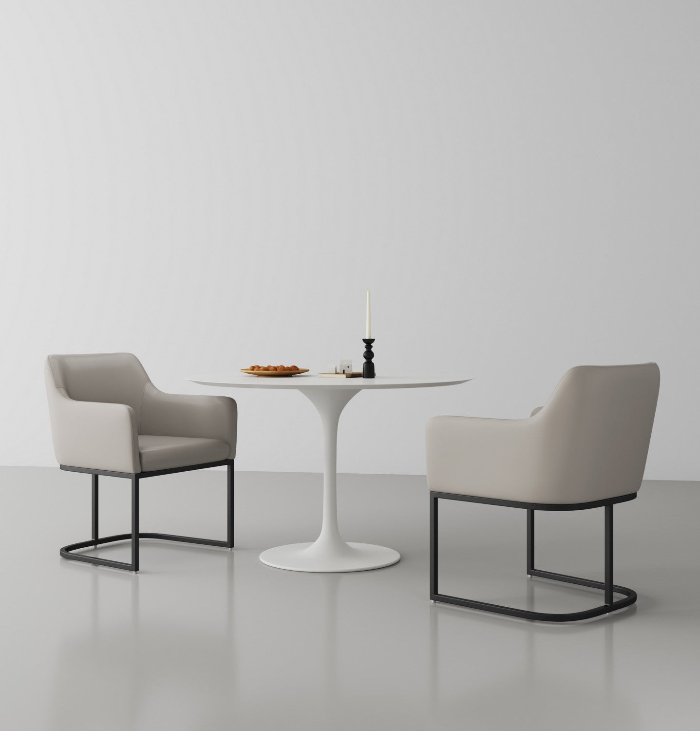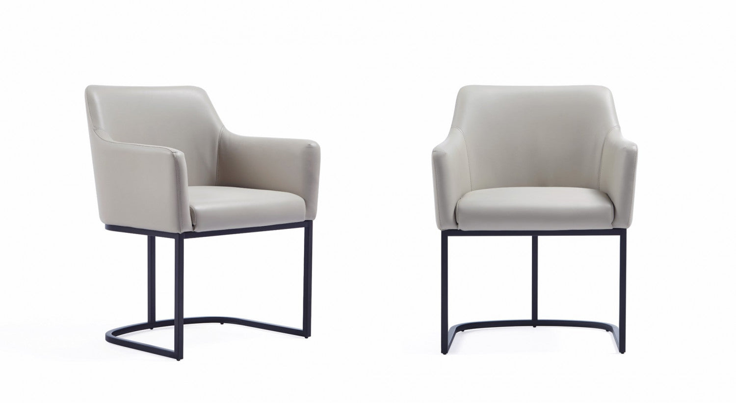 Serena Modern Metal Vegan Leather Armchair in Light Gray - Set of 2 Dining Chair