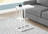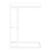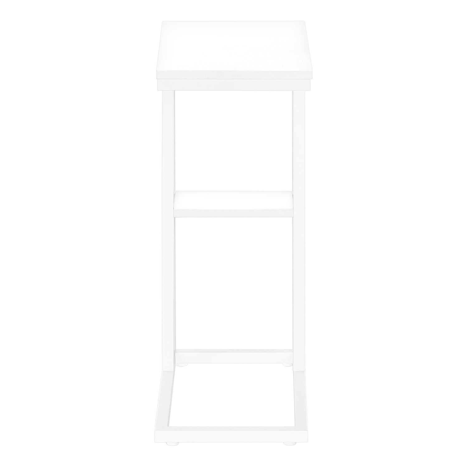 Straight lines and clean angles give this C-shaped accent table an elegantly modern look. The rectangular tabletop in a white finish is supported by a white metal frame with a secondary shelf underneath the table for convenient placement of smaller items. Slide this versatile end table under a sofa or chair to place snacks or mobile devices or use as a side table next to a bed.