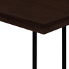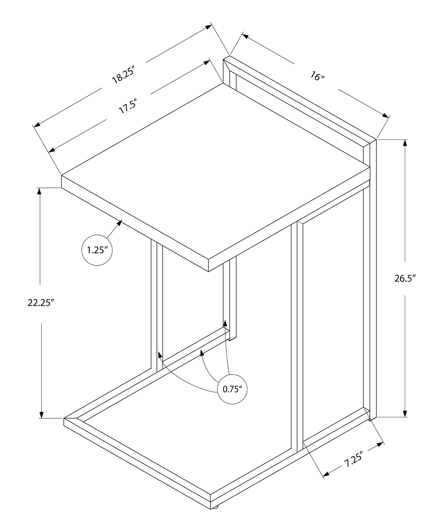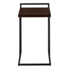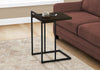 This C-shaped accent table brings something extra to the table. The thick-panel tabletop in a dark brown espresso finish offers a wider surface than most standard-size C tables. More surface space gives you more opportunities to use this end table. It can multitask in a living room or bedroom as a snack table when you watch TV, a nightstand to place a mobile phone while you sleep, or even a small laptop table when you need to work. The black metal base slides under a sofa or bed to bring items closer to you and offers another convenient feature: The top of the frame extends over the tabletop to create a handle that makes it easier to lift and move this portable side table.