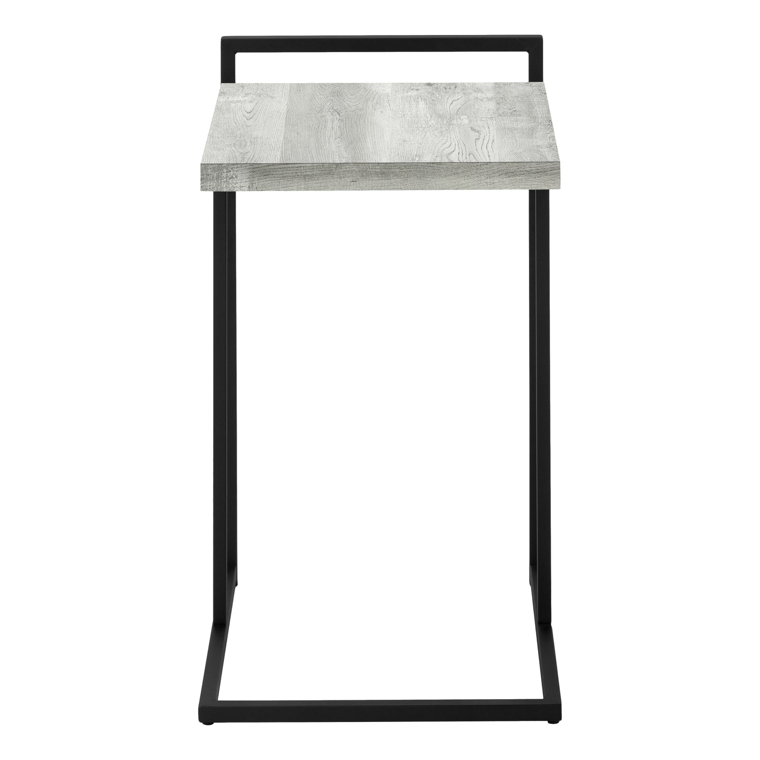 This C-shaped accent table brings something extra to the table. The thick-panel tabletop in a grey reclaimed wood-look finish offers a wider surface than most standard-size C tables. More surface space gives you more opportunities to use this end table. It can multitask in a living room or bedroom as a snack table when you watch TV, a nightstand to place a mobile phone while you sleep, or even a small laptop table when you need to work. The black metal base slides under a sofa or bed to bring items closer to you and offers another convenient feature: The top of the frame extends over the tabletop to create a handle that makes it easier to lift and move this portable side table.