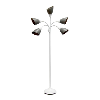 Simple Designs 67" Contemporary Multi-Head Medusa 5-Light Adjustable Gooseneck Floor Lamp - Grey and White