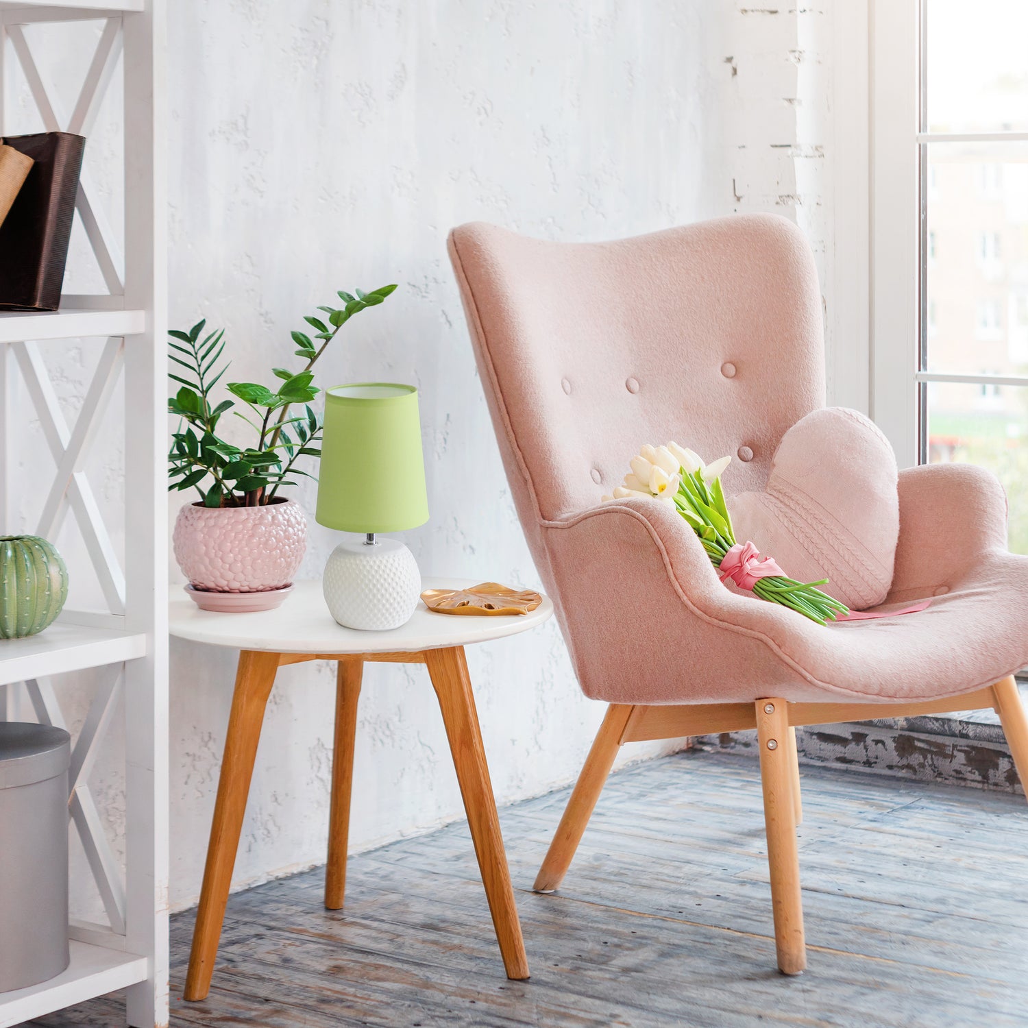 In need of a small, yet cute lamp to sit within a small space? Look no further! A dotted texture on the curved ceramic base, below a coloured fabric shade makes this piece easily adaptable to any interior! Add a pop of colour with your shade options, or keep your lamp neutrally simple in all white.