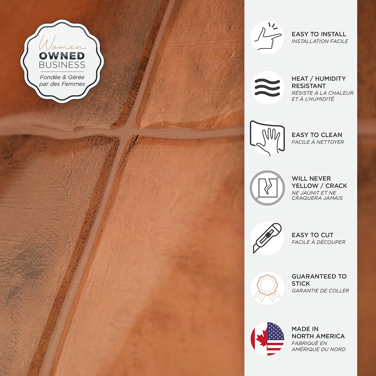 Smart Tiles are robust and resistant to heat from stovetops. They are also suitable as a backsplash in bathrooms (not suitable for inside the shower). Simplify your life with these innovative stick-on wall tiles specially designed for kitchen and bathroom backsplash areas. No more messy, time-consuming and nerve-wracking tile installations with grout or glue. Effortless DIY, easy-to-follow instructions included. Clean and dust-free installation. Smart Tiles are a work of art. Once Smart Tiles have entirely adhered to the surface, after 48 hours they will stick without peeling or cracking, for as long as you need them to.