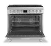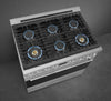 This gas range from Smeg features six sealed burners for plenty of cooking space and power. Continuous cast iron grates on the cooktop ensure easy transport of pots and pans from burner to burner. Plus, the EverClean enamel oven cavity and black enamel cooktop make keeping this range sparkling a breeze.
