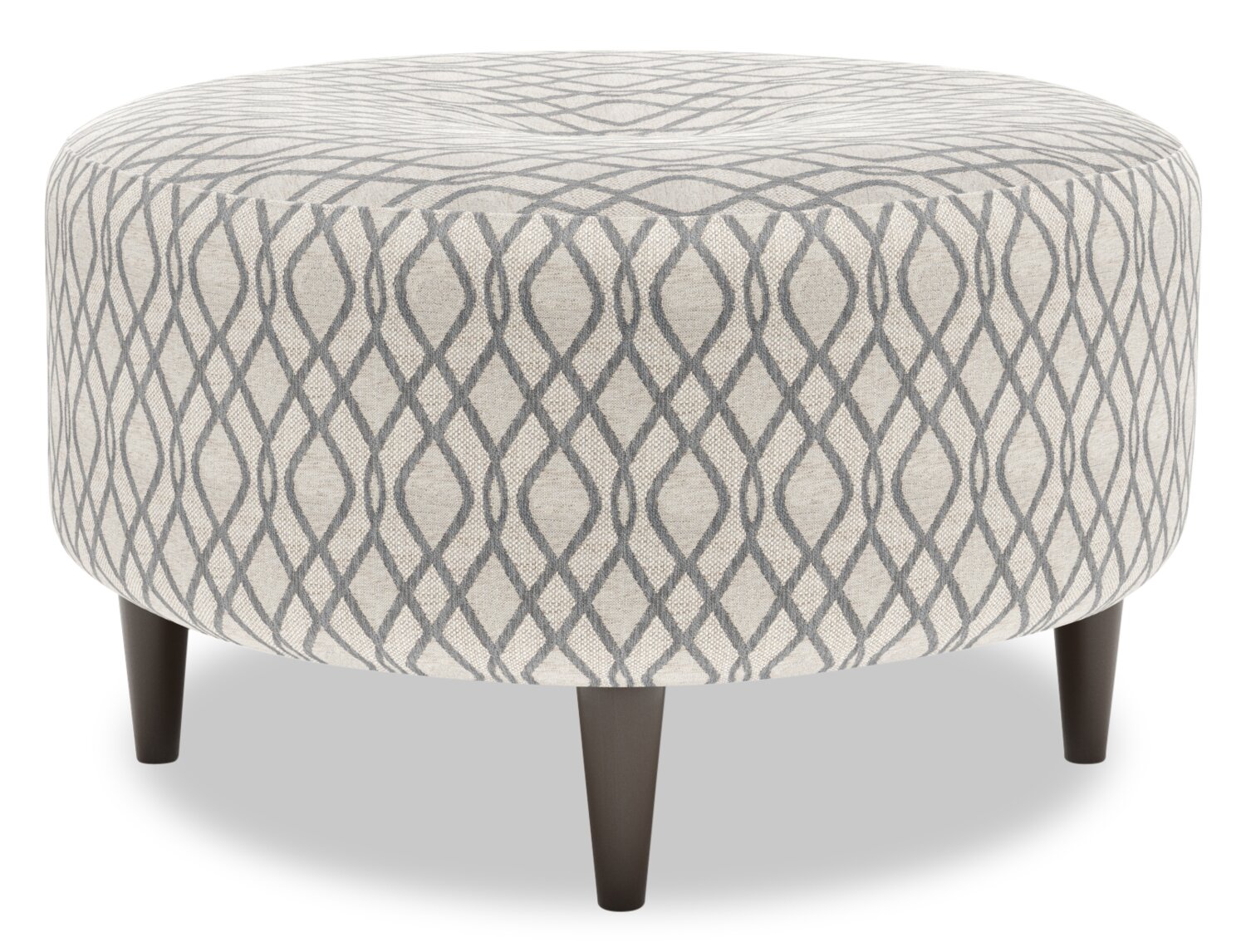 Accent Details | A button tuft in the centre of the round ottoman top gives this piece a plush look. |