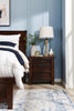 Settle in for the night with this beautiful Sonoma bedroom set offering extra storage in the base of the bed. Made with durable and eco-friendly rubberwood, this set is finished in a lovely burnished mango. Antiqued, dark pewter hardware offsets the finish stunningly, and the raised wood detailing on the drawers and bed add a gorgeous finishing touch to this traditional bedroom package.