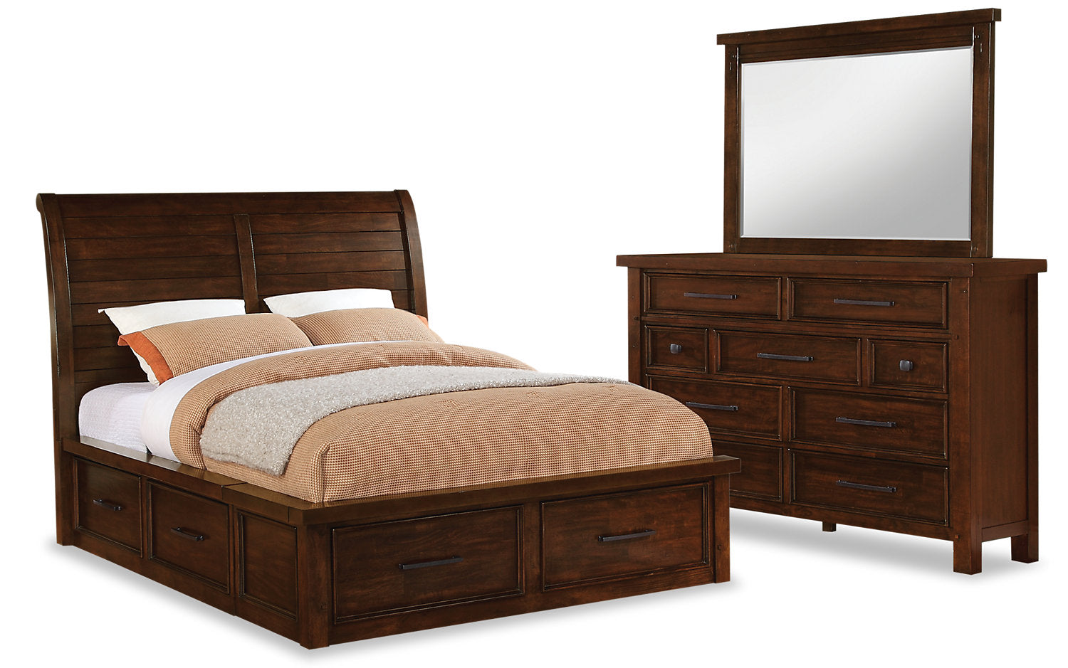 This Product Includes | Package includes one queen bed (headboard, footboard and rails), dresser and mirror. |