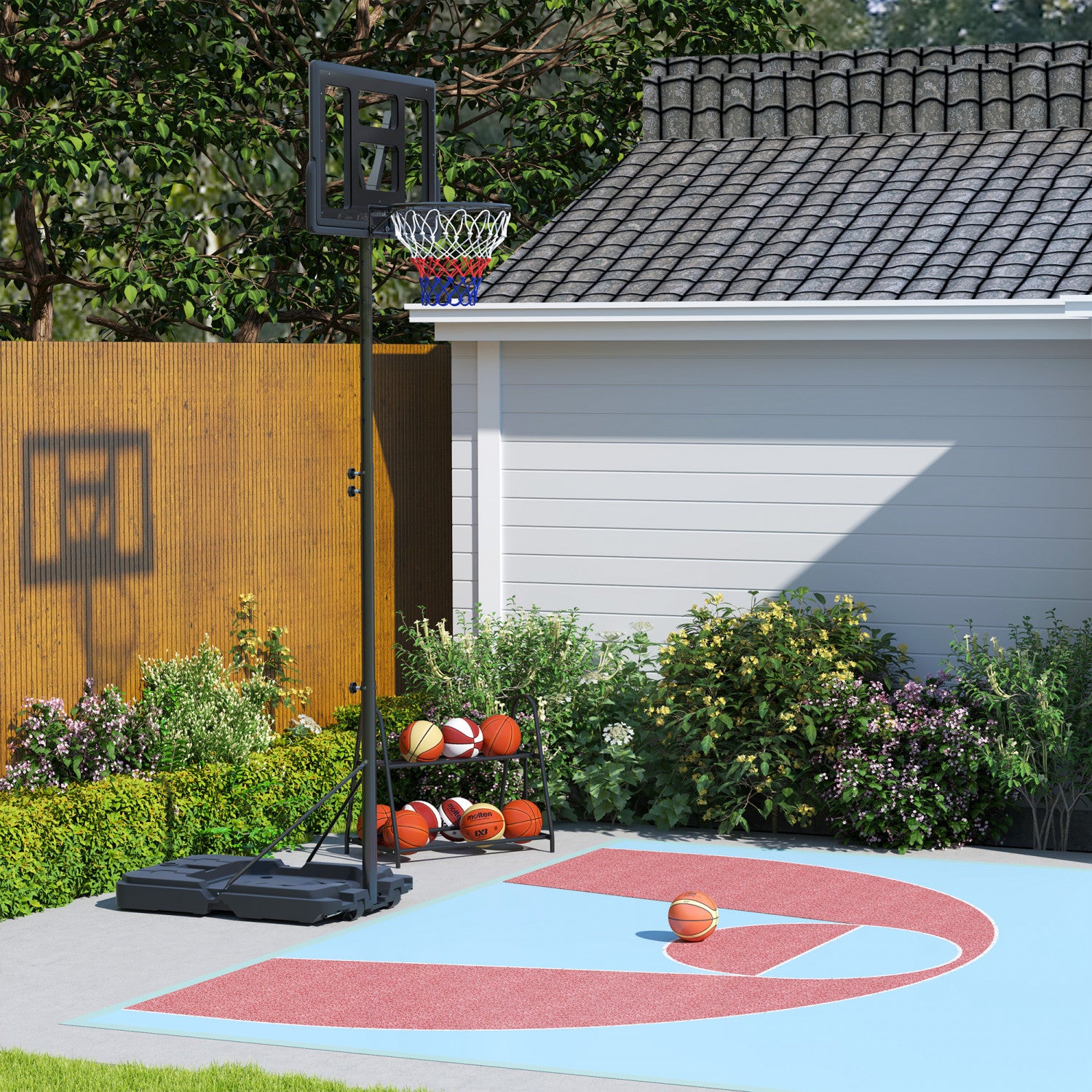 | Key Features | - 10 height settings: 7.5-10ft (2.3-3.05m); - Base supports varying weights, enhancing stability with water or sand; - Dual-spring rim and shatterproof backboard increase safety during play; - Built-in wheels make moving the unit effortless; - Convenient ball holder provides easy storage; |