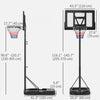 | Additional Information | - Colour: Black; - Material: Steel, Plastic, PE; - Backboard Size: 43.3" W x 27.6" H (110 x 70 cm); - Base Size: 41.3" L x 26.8" W x 5.9" H (105 x 68 x 15 cm); - Hoop Size: ⌀17.7" (⌀45 cm); - Hoop Height: 90.6" -120.1" (230-305 cm); - Item Label: A61-063V00BK; |